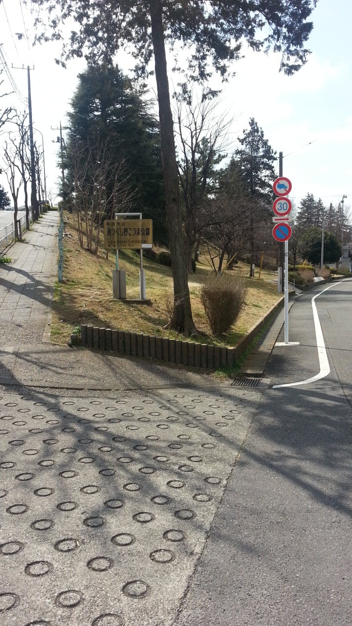 こうま公園を右手に見て246号線に沿って歩くと前方に歩道橋が見えてきます。